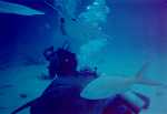 I returned to dive Bonaire, during September/October of 1996. This was the fourth MS Scuba Club trip (though the club seemed to have all but collapsed by this time). Though the accommodations and dive leadership left a lot to be desired, this trip was highlighted by several records for me: a dive to 129 feet (my deepest dive by just a bit), a dive that lasted a total of 71 minutes (after hitting over 80 feet), and my first time seeing free swimming sharks!!!! On the last dive, we spotted first one, then a pair of 5' long Black Tipped Reef sharks cruising along in about 15' of water.